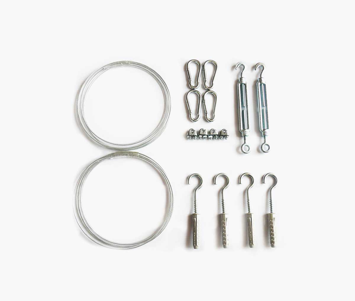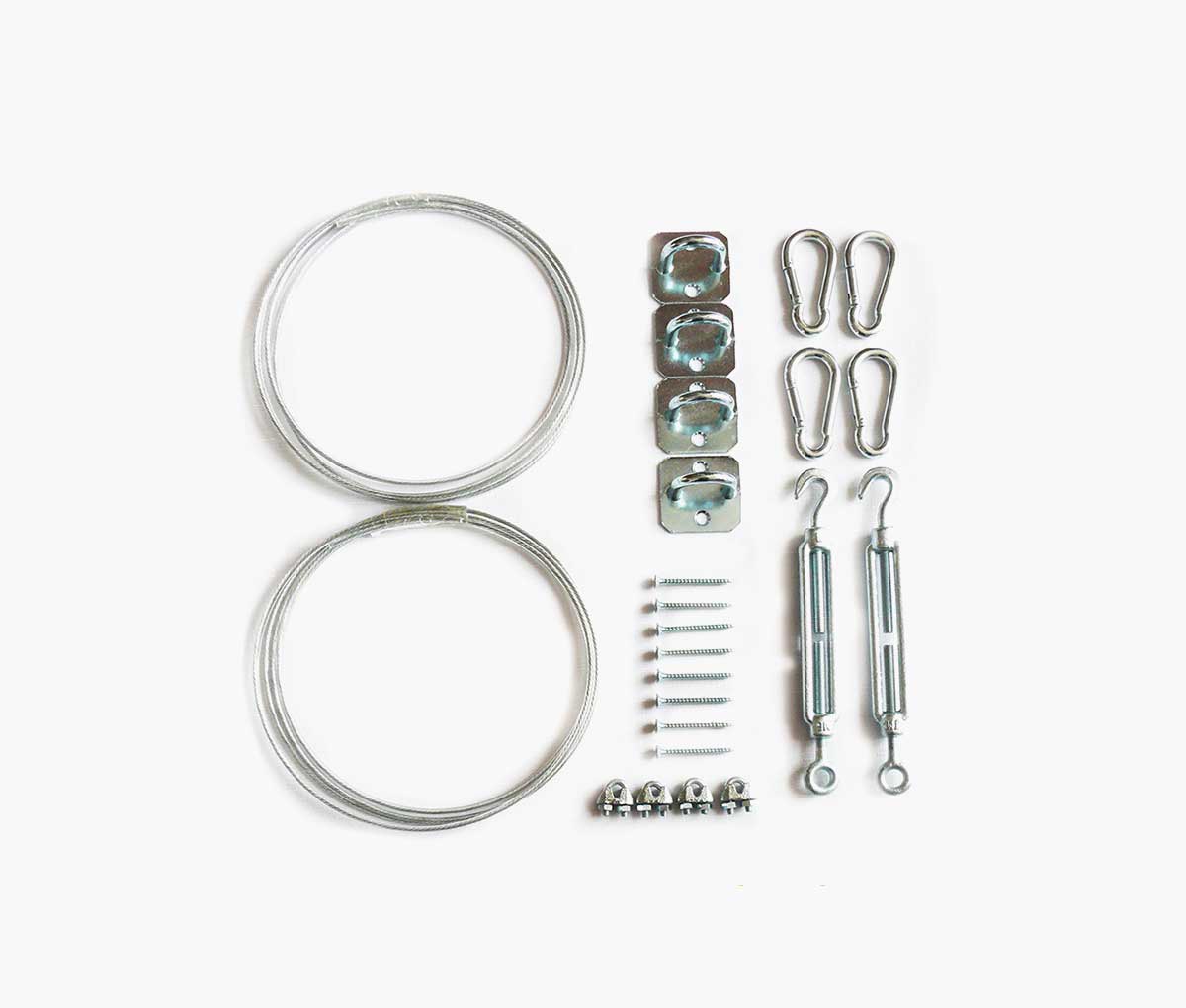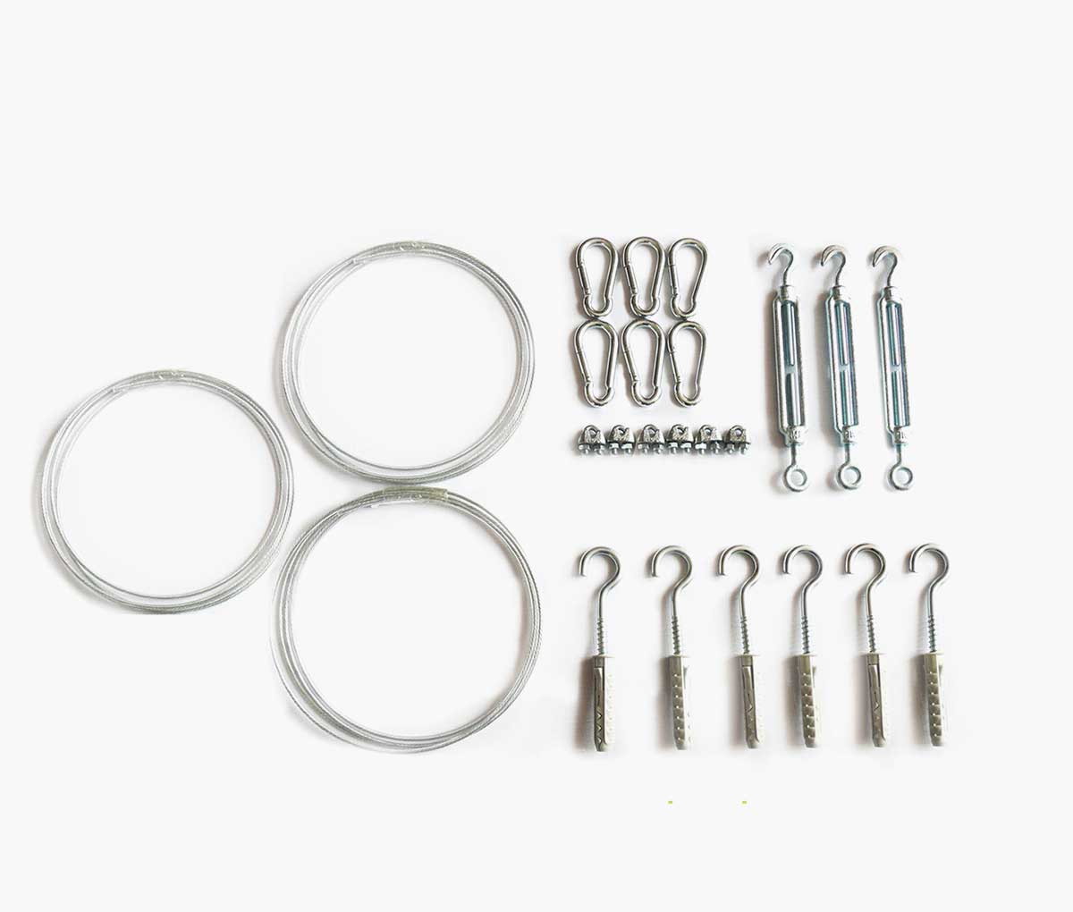 - Zahvaljujući pričvrsnim očicama na rubovima tende, provodi se čelična žica kojom se tenda može izvući ili sklopiti