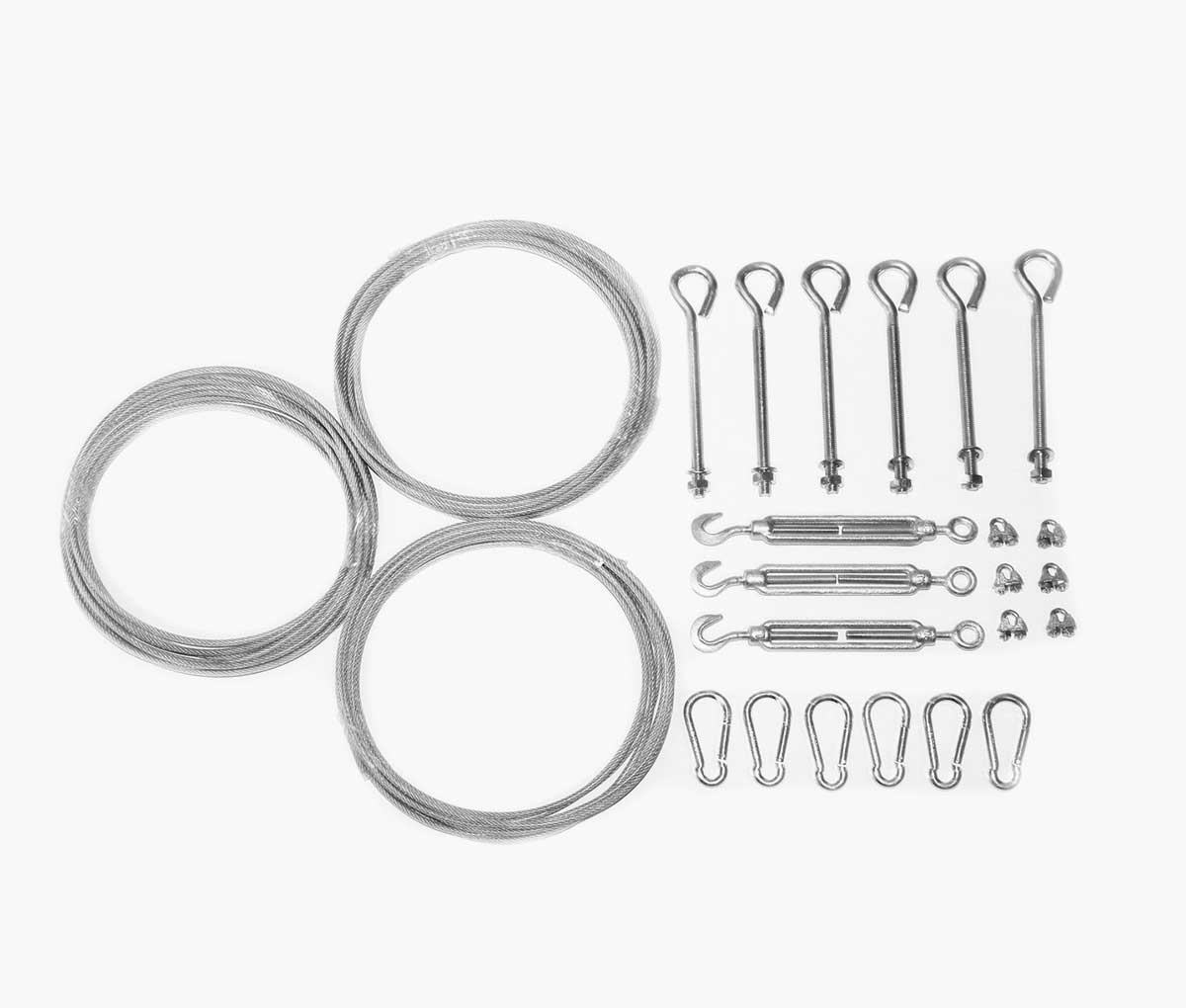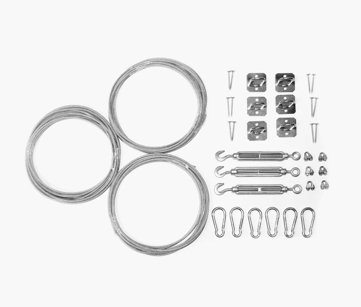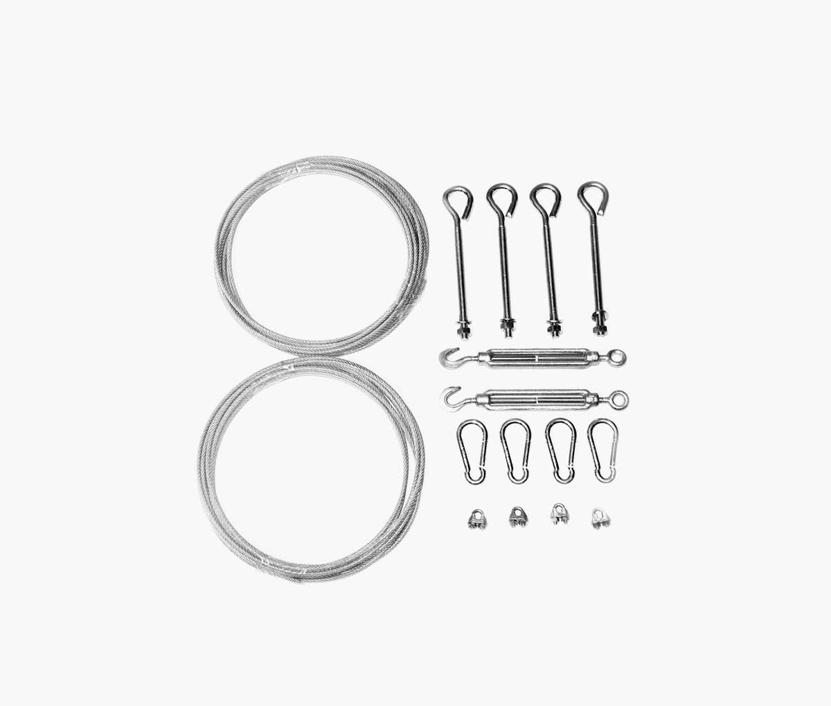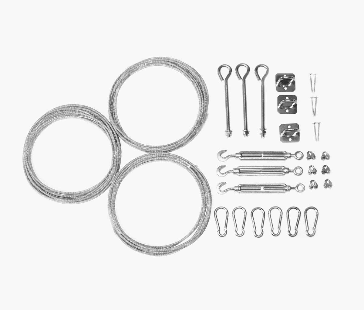 - Zahvaljujući pričvrsnim očicama na rubovima tende, provodi se čelična žica kojom se tenda može izvući ili sklopiti